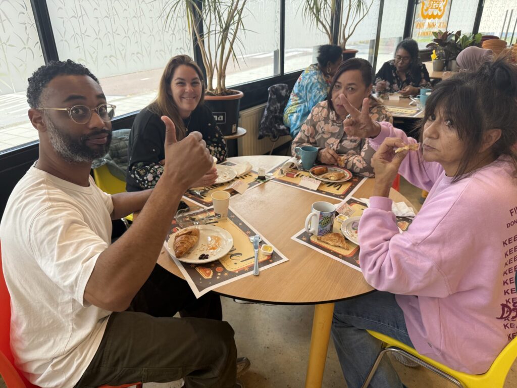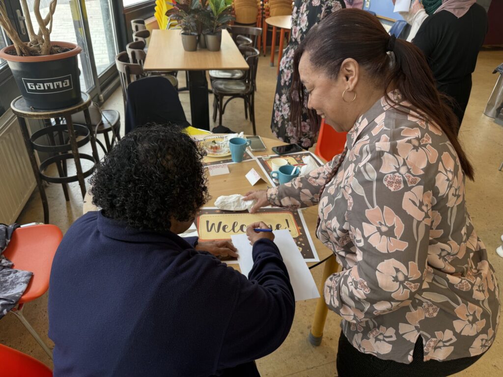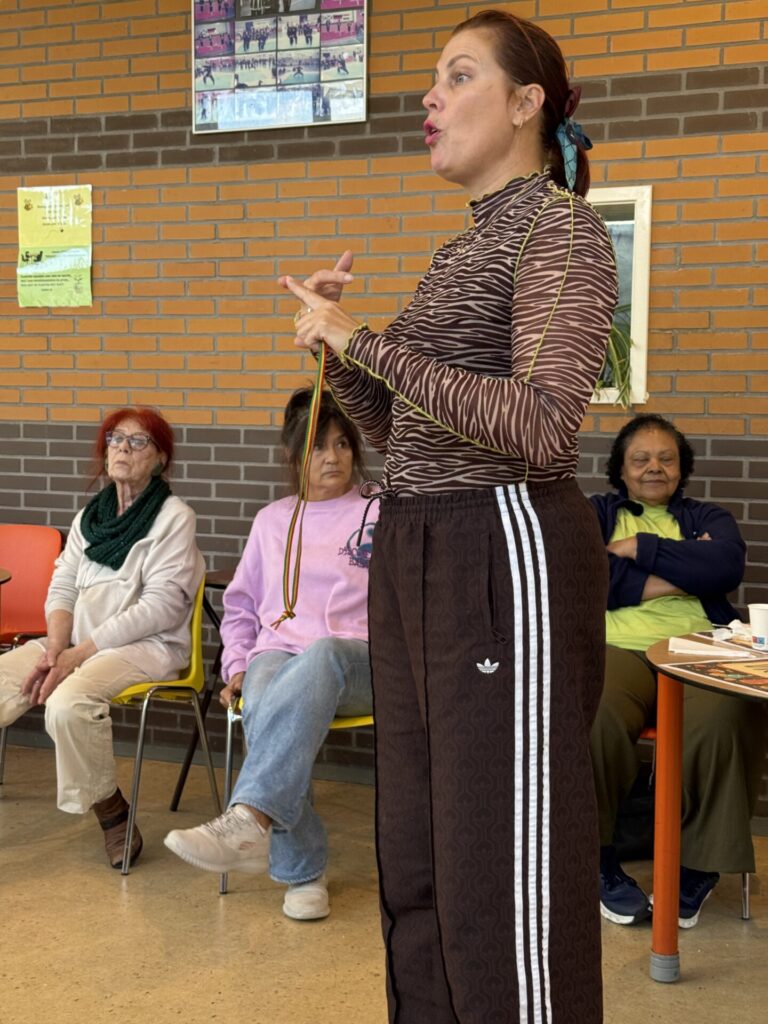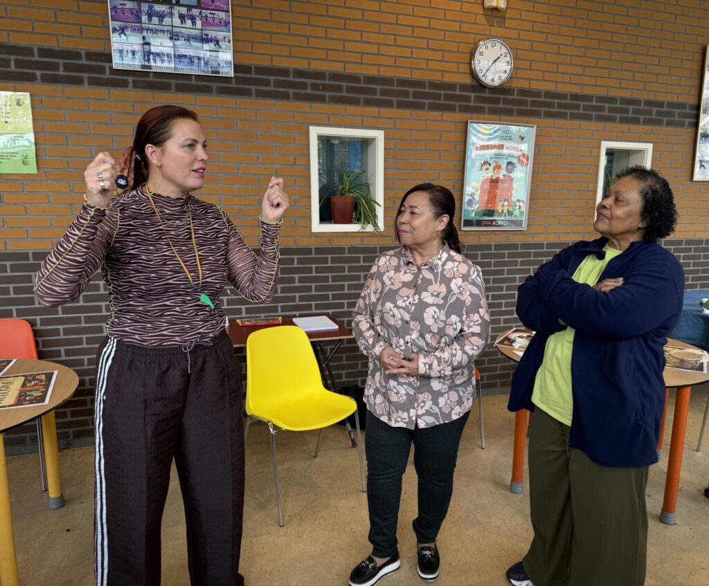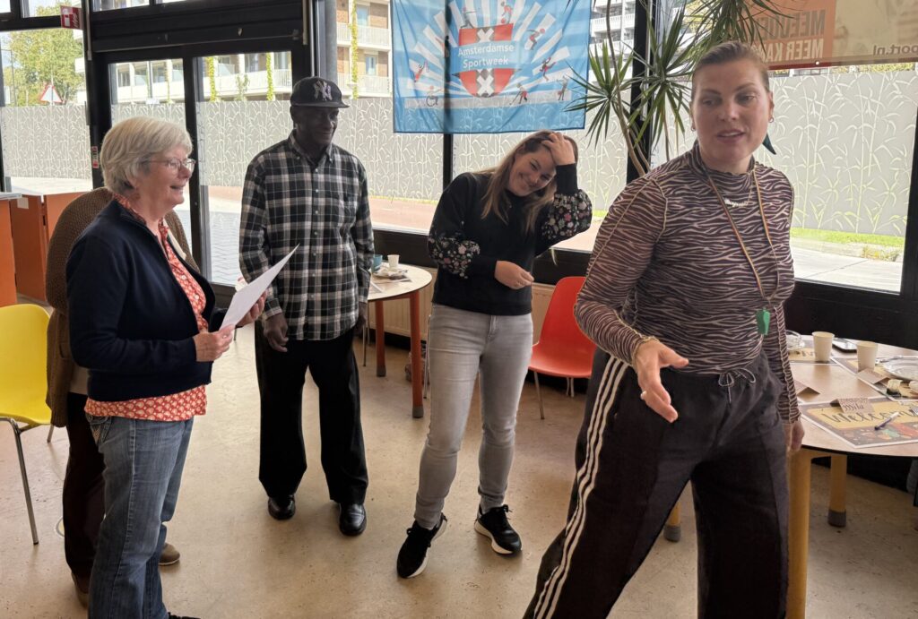 Erna werd genoten van een heerlijke lunch, zoals altijd met een speciale tafelschikking, zodat junioren en senioren door elkaar zitten. Bijna was de tijd vergeten, want de gast, mw Lieke Koningen (cultuur coördinator MBO College ZO), had een leuke en interactieve bijeenkomst voorbereid. ‘Train je democratische spieren’, noemde ze het. In tweetallen ging iedereen een idee vertellen om in je buurt iets te verbeteren en de ander leverde positieve feedback. Er werd één idee uitgekozen dat weer aan anderen werd verteld enzovoort. In de groep kwamen alle ideeën weer aan bod.